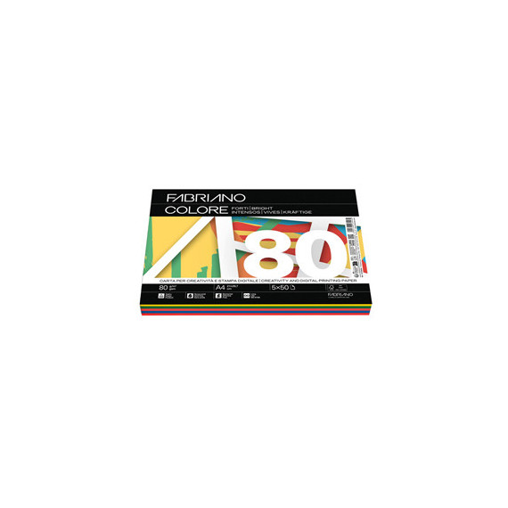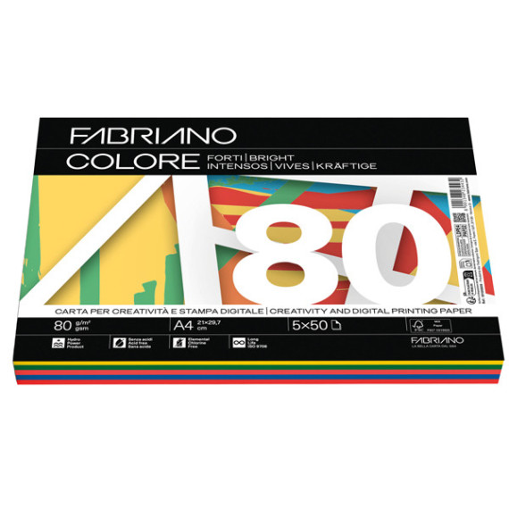 Carta Fabriano Colore - A4 - 80 gr - mix 5 colori forti - Fabriano - conf. 250 fogli