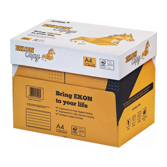 Carta fotocopie A4 Ekon copy 80gr - bianca - 500ff - in risma - bianco elevato - Certificata FSC,ECF,ECOLABEL,ISO9706 - minimo acquisto 5pz-