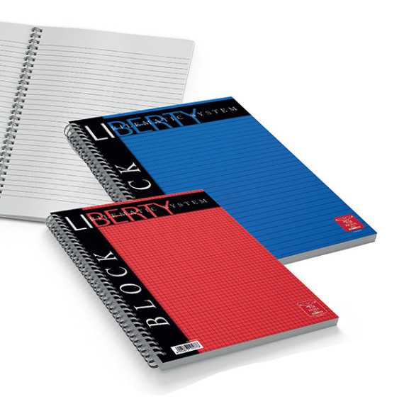 Blocco Liberty Block spiralato - 22x29,7cm - 4 fori - microperforato - 70 gr - 80 fg - 1 rigo - Pigna