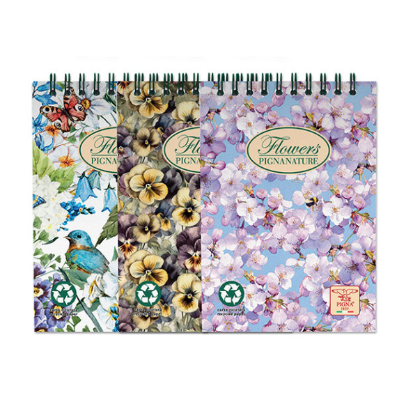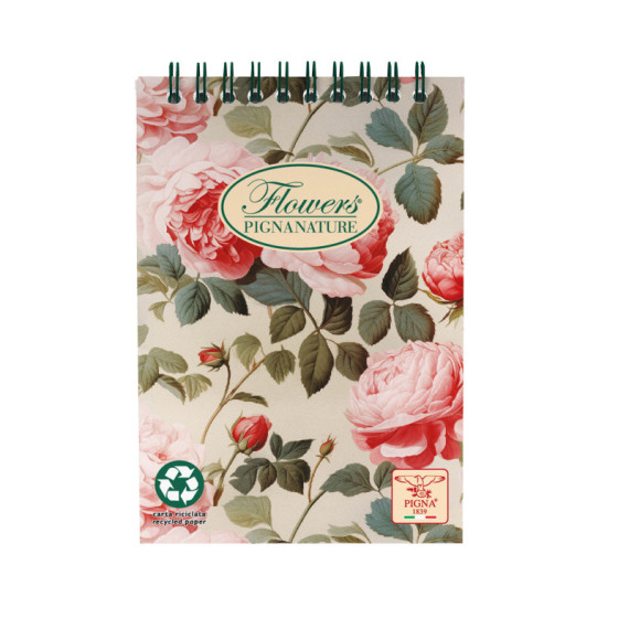 Blocco Nature Flowers - spiralato sul lato corto - A6 - 50 fogli - 80 gr - 5mm - Pigna