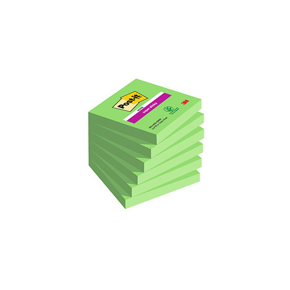 Blocco Post-it Super Sticky - 654-6SS-GRN - 76 x 76 mm - verde - 90 fogli - Post-it - conf. 6 pezzi
