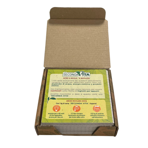Maxiquaderno con rilegatura a punto metallico. Carta da 80 gr/mq. Copertina in cartoncino da 240 gr/mq. Prodotto totalmente in carta riciclata - Totalmente privo di plastica - 100% riciclabile. 20 fogli (80 facciate scrivibili) + risguardo. Confezione in cartone privo di plastica contenente 12 maxiquaderni rigatura 5mm c/margine + 6 scatoline di foglietti per appunti in omaggio (carta proveniente da rifili di lavorazione). Una linea di prodotti ecologici ad altissima grado di sostenibilità. Prodotti con energia solare.