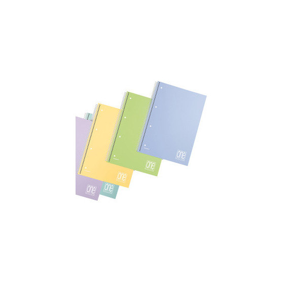 Maxiquaderno spiralato sul lato lungo. Formato 22,2x29,7cm. 80 fogli (160 facciate scrivibili). Forato e microperforato. Carta da 80 gr/mq. Doppia copertina in polipropilene nei colori One Color Pastel. Cartoncino di rinforzo bianco/bianco da 600 gr/mq. Spirale a molla.