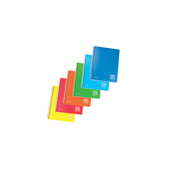 Maxiquaderno spiralato senza fori sul lato lungo. Formato 22,2x29,7cm. 80 fogli (160 facciate scrivibili). Carta da 80 gr/mq. Doppia copertina in polipropilene nei colori assortiti One Color. Cartoncino di rinforzo bianco/bianco da 600 gr/mq. Spirale a molla.