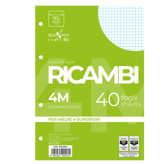 Ricambi forati Quaxima - A4 - 4 mm - 80 gr - Pigna - conf. 40 pezzi