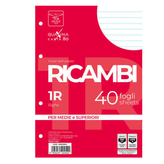 Ricambi forati Quaxima - A5 - 1 rigo - 80 gr - Pigna - conf. 40 pezzi