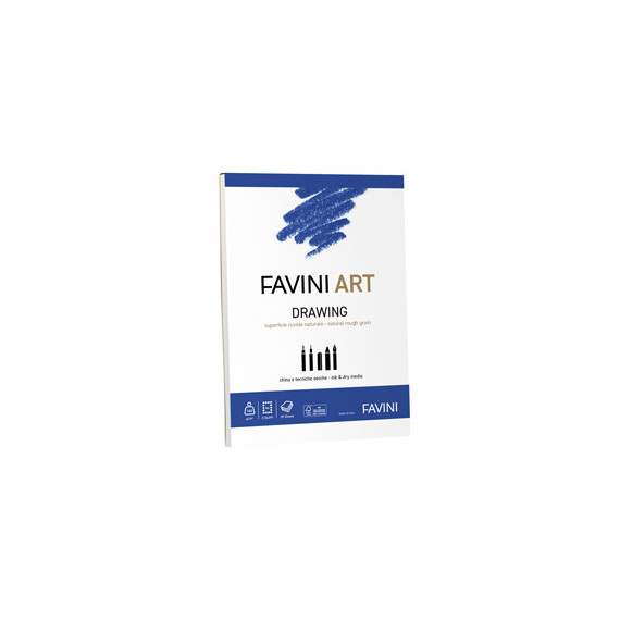 Blocco adatto a diverse tecniche secche come matite, pastelli, china, carboncini, gessi, sanguigna e altre tecniche a secco. La carta del blocco Drawing possiede una grana fine e un ottimo punto di bianco che dona brillantezza ai colori offrendo un buon contrasto nei chiaroscuri.