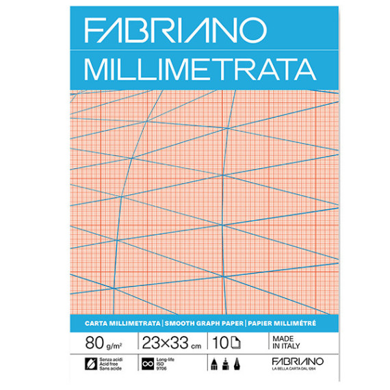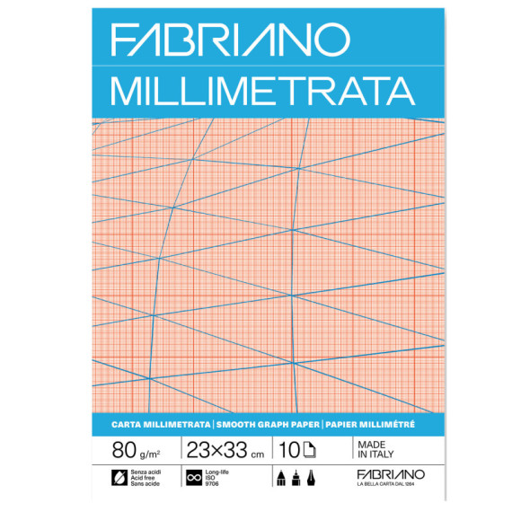 Blocco carta millimetrata - 23 x 33cm - 10 fogli - 80gr - Fabriano