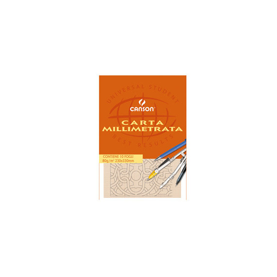 Carta opaca millimetrata Canson da disegno. Millimetrata opaca e lucida si presta in particolare agli usi tecnici e manuali, a matita ed ad inchiostro. In formato 23x33cm da 80gr/m, quadrettatura colore arancio.