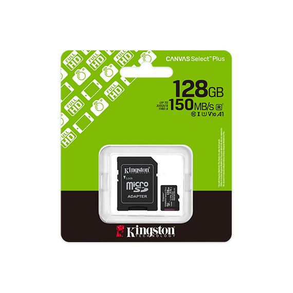 Micro Kingston SDCS3/128GB SDXC 128GB classe 10 UHS-I, U1/U3, Classe video 10/30, A1 microSD Canvas Select Plus fino a 150 MB/s