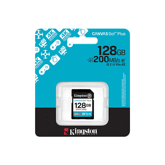 Scheda SDXC U3 e V30 Kingston 128gb SDG4/128GB Scheda di memoria Canvas Go SD,UHS-I velocità di trasferimento fino a 200MB/s