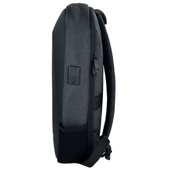 Zaino unico scomparto in tessuto con fronte rigido in ABS antiurto. Scomparto interno espandibile con tasca imbottita per notebook 15.6. Retro e spallacci imbottiti traspiranti, regolabili. Fascia posteriore per trolley. Presa Usb e Usb-c per powerbank. Tasca laterale. Dimensioni: 29x41x10cm