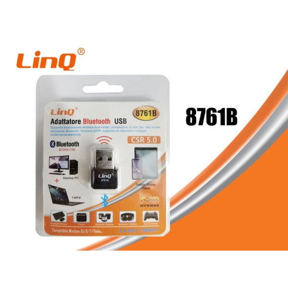 Adattatore bluetooth 5.0 Linq 8761B nano Usb 2.0 - Plug and play - distanza 10mt wi-fi - basso consumo - stabile - alta qualità