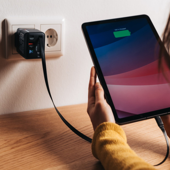 Caricabatterie - da muro - GaN - 65W - 2 porte - con cavo retrattile -Verbatim