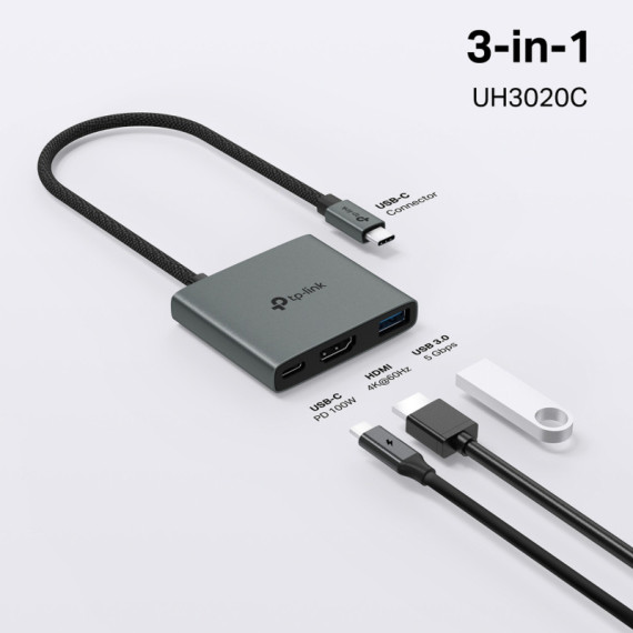 Grazie a un case in lega di alluminio dal design ultra-compatto, UA3020C è estremamente resistente e non interferisce con le altre porte del tuo dispositivo, garantendoti un'esperienza d'uso ottimale. Hub USB-C 3 in 1: UH3020C trasforma una porta USB-C in 3 porte con HDMI 4K@60Hz, PD 100W e 1 porta dati USB-A. Display multimediale Ultra High-Definition: collegati a un monitor esterno tramite la porta HDMI 4K@60Hz per risoluzioni straordinarie in alta definizione. Ricarica rapida 100W: collega il cavo di ricarica a UH3020C e fornisci costantemente fino a 100W di potenza al tuo PC durante il trasferimento di file o lo streaming di contenuti multimediali. Trasferimenti dati da 5 Gbps: UH3020C aggiunge una porta USB 3.0 per consentire un rapido trasferimento dei dati. Plug <(>&<)> Play: basta collegarlo e iniziare a utilizzarlo in pochi secondi, grazie all'installazione senza driver compatibile con Mac OS, Windows 11/10/8.1/8/7, Linux OS, iPadOS, iOS, Android e Chrome OS.