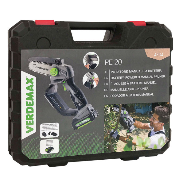 Il potatore da giardino è progettato per tagliare rami, doghe, legno duro e tenero. Capacità massima di taglio: 120 mm. FORBICE:38x19x17cm Peso:1,78 Kg. Batteria e caricabatteria inclusi. Batteria di ricambio 20V (2Ah) cod.93288