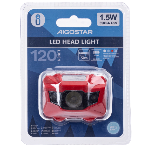 Torcia lampada da testa led frontale a batteria Aigostar 1.5w 120 lumen 6500k luce fredda IP44 2 regolazioni di luminosità