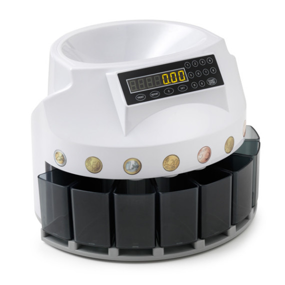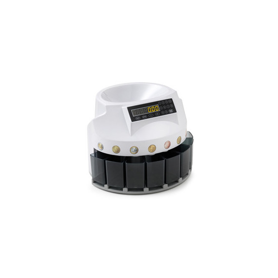 Conta dividi monete Euro a 8 cassetti, di facile utilizzo, silenziosa e veloce. Funzioni: BATCH: permette di impostare una quantità predefinita di monete da contare. ogni volta che il numero selezionato viene raggiunto la macchina si ferma. In caso di utilizzo con conteggio libero (funzione batch non attivata), l’arresto avverrà quando premuto il tasto START/STOP. REPORT: visualizzazione a display dei risultati di conteggio suddivisi per denominazione. PRINT: stampa del report visualizzato a display su stampante termica dedicata (cod.87185).
