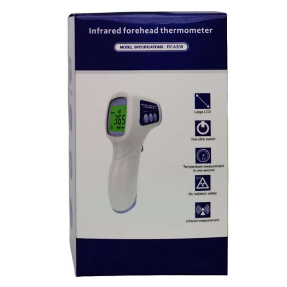 Termometro digitale a infrarossi per la misurazione a distanza della temperatura corporea. Punti di forza: facilitA' di lettura, rapiditA', precisione, affidabilitA' della misurazione, memoria, segnale acustico a fine misurazione.Specifiche tecniche:- Range di misurazione:da 32 C a 42.5 C- Precisione: +/- 0,2 C- Avviso acustico ad 1 secondo dall'avvenuta misurazione- Durata misurazione: circa 1 secondo.- Batteria DC 3V (2 pezzi AA- 32 memorie- Distanza di misurazione: circa 3-5 cm- Spegnimento automatico dopo 30 secondi- Display LCD a tre colori- Peso 105g incluse le batterieCE 0123. REPERTORIO DISPOSITIVI MEDICI Ministero della Salute nr. 1732780 classificazione CND V03010102