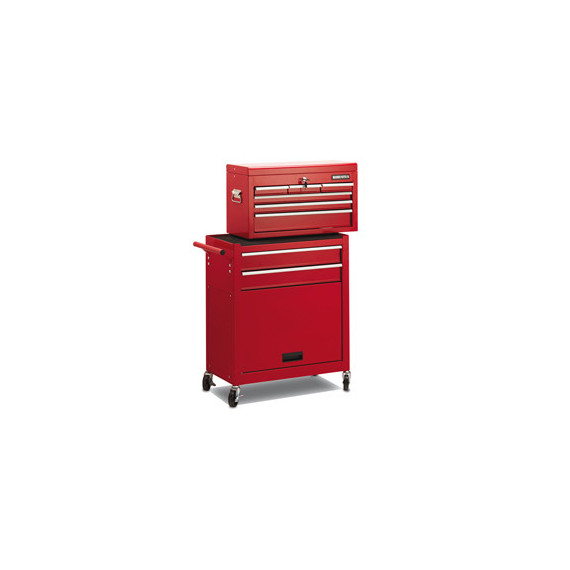 Carrello portautensili in acciaio scomponibile in due parti: la parte inferiore è dotata di quattro ruote pivottanti, un vano accessibile frontalmente con sportello a ribalta, un pannello laterale, un lato forato per appendere ganci portattrezzi, due cassetti di grandi dimensioni, due chiavi in dotazione. La parte superiore, che puo essere rimossa, è una cassettiera costituita da box con coperchio fornito di chiave e di sei cassetti e puo essere infilata all interno della parte inferiore. Dimensioni: 74,5/108x33x61,5cm. Articolo destinato ad esclusivo uso domestico. Non adatto ad uso pubblico.