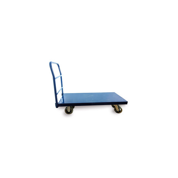 Carrello piatto prodotto in lamiera rinforzata e una sponda in acciaio.Verniciato di color blu con quattro ruote di cui due girevoli e due fisse. Portata massima 500 kg. Dimensioni: 90x60x121cm.Dimenstione imballo 13x128x64cm Peso 38KgArticolo destinato ad esclusivo uso domestico. Non adatto ad uso pubblico.