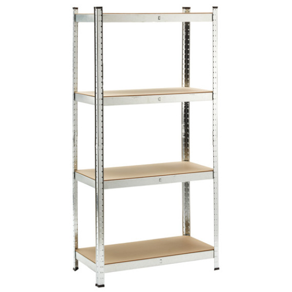Scaffale in metallo galvanizzato ad incastro con 4 ripiani in MDF, spessore 4 mm, portata massima 150 kg per ripiano uniformemente distribuiti. Spessore struttura 0,63 mm. Prodotto da assemblare. Dimensioni: H160 x P40 x L80cm. Articolo destinato ad esclusivo uso domestico. Non adatto ad uso pubblico.