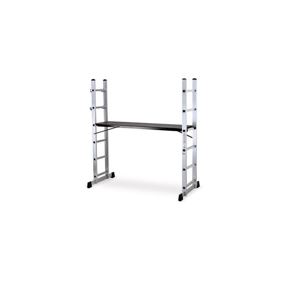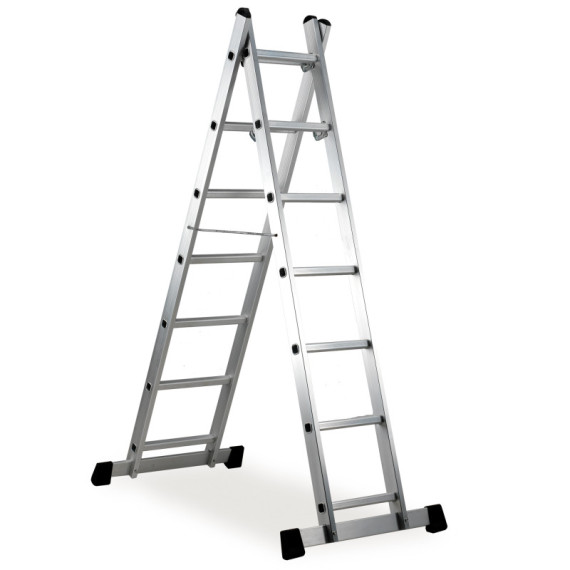 Trabattello in alluminio Everest a 6 gradini. Trasformabile in doppia scala o scala allungabile. Misure a Trabattello 40x160xH168cm. Consigliata per uso domestico e bricolage. Prodotto testato da SGS e conforme alla normativa Europea UNI EN 131. Portata massima: 120kg.