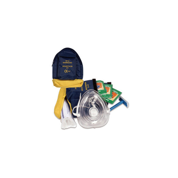 Kit pocket mask con accessori per la defibrillazione e la rianimazione. Contenuto: 1 pocket mask 1 salvietta disinfettante 1 busta da 4 guanti in vinile 1 rasoio per tricotomia 3 buste garza sterile cm 18x40