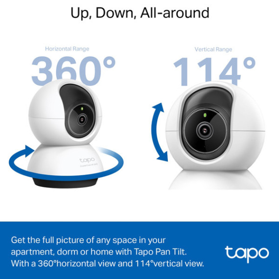Telecamera ad alta definizione 2K con rotazione orizzontale a 360° e verticale a 114° e visione notturna LED IR 850 nm fino a 9 metri. Audio bidirezionale. Storage locale su MicroSD card fino a 512 GB (non inclusa).Rilevamento e notifiche Smart AI - Sfrutta le tecnologie smart AI per effettuare un monitoraggio mirato e ricevere notifiche solo in caso di reale bisogno. Alimentazione: 100–240VAC, 50/60Hz. Dimensioni 85,4x86,8x117,7mm.