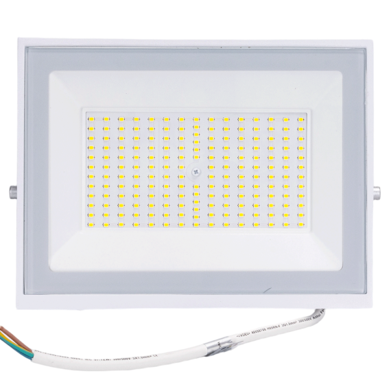 Faro LED da 100W ad altissima luminosità, ideale per illuminare ampie aree come cortili, parcheggi, magazzini, capannoni, cantieri e spazi esterni.