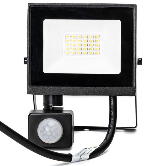 Faro LED da 20W con sensore integrato, ideale per illuminare ingressi, giardini, cortili, garage e zone di passaggio.
