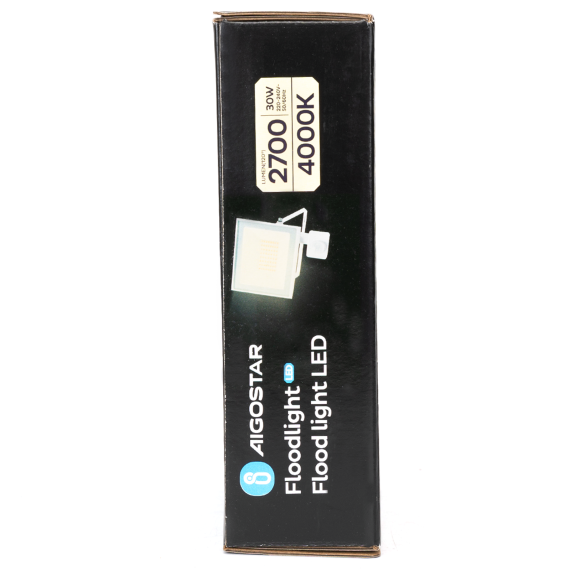 Faro LED da 30W con sensore integrato, ideale per illuminare ingressi, giardini, cortili, garage e zone di passaggio.