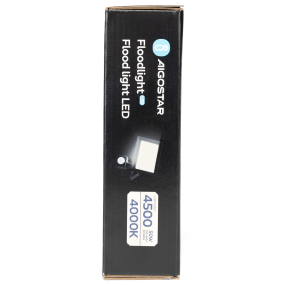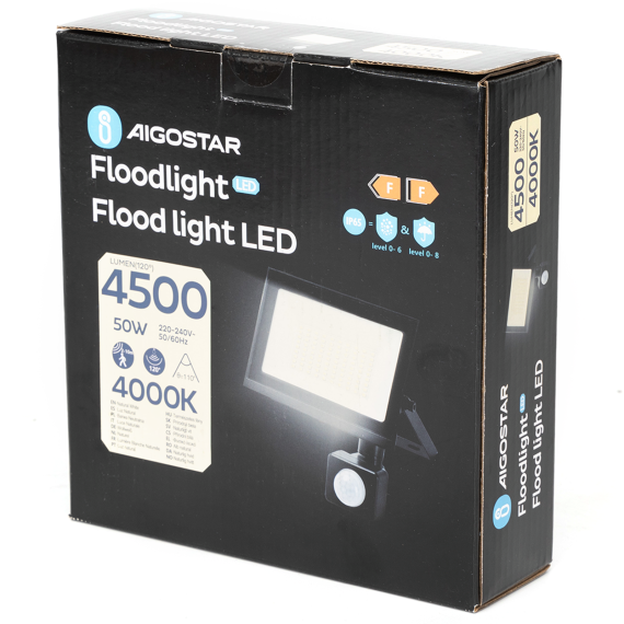 Faro LED da 50W con sensore integrato, ideale per illuminare ingressi, giardini, cortili, parcheggi, garage e zone di passaggio.