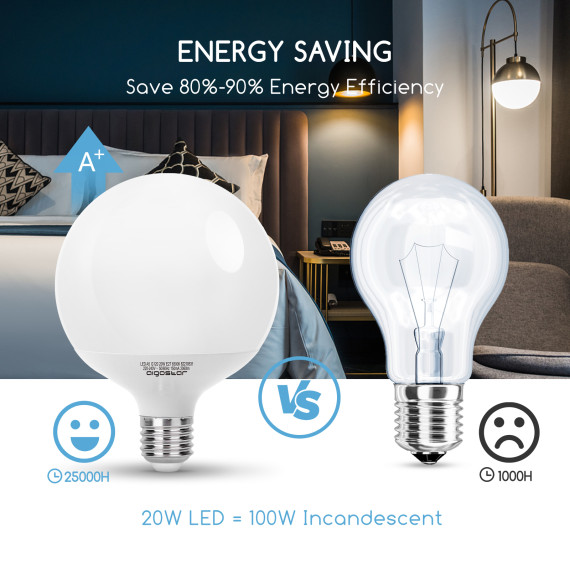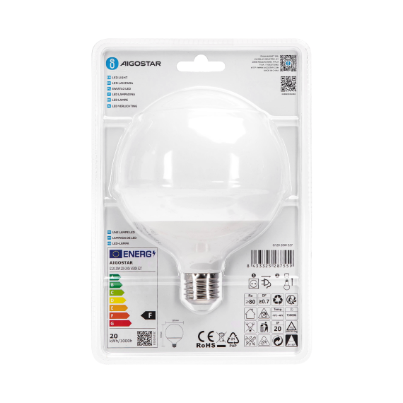 Lampadine led G120 20W attacco E27 2060 lumen - 6500K luce fredda , misura D120xH157mm Equivale a 129w incandescenza