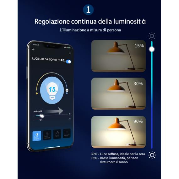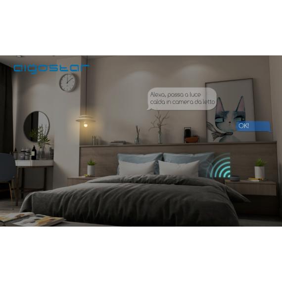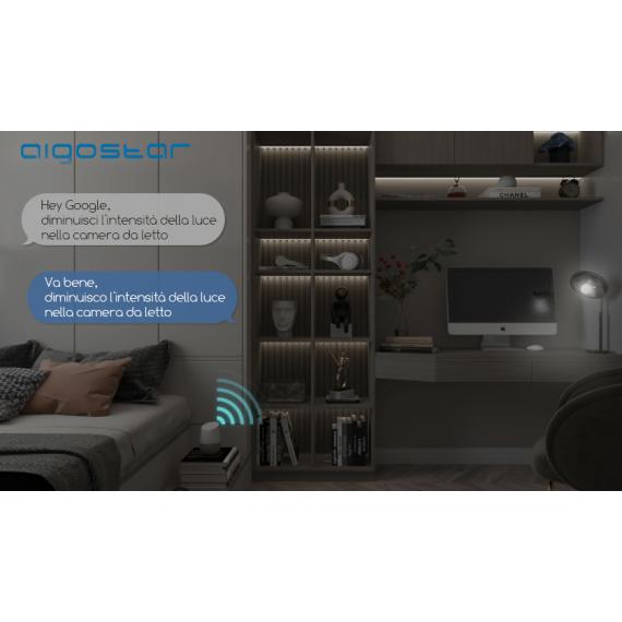 Accoppiando i dispositivi a un sistema per il controllo vocale come Amazon Alexa o Google Assistant, sarà possibile controllare l'accensione e la luminosità con un semplice comando della voce.