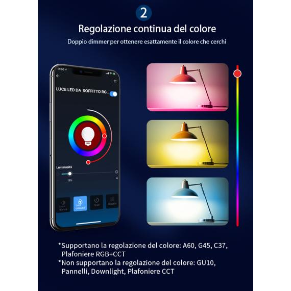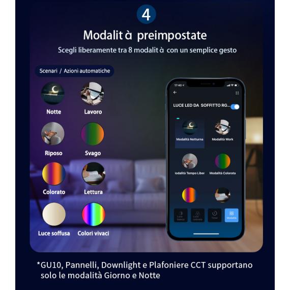 Puoi controllare da remoto la luminosità e il colore, scegliere tra diverse modalità e scenari e creare un'esperienza più immersiva e personale.