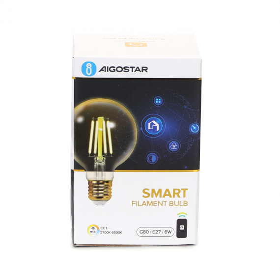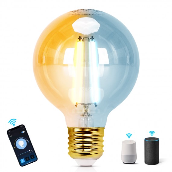 LAMPADINA SMART LED A FILAMENTO AMBRATA G80 6W E27 WIFI CCT 2700K-6500K 806 LUMEN D80H117mm COMPATIBILE CON ALEXA E GOOGLE ASSISTANT - POSSIBILITA' DI CAMBIARE INTENSITA' A PROPRIO PIACIMENTO, TUTTO TRAMITE APP!!!