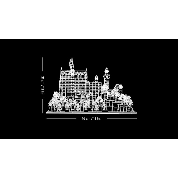 - Dimensioni: questo modello architettonico da display del Castello di Neuschwanstein, composto di 3.455 pezzi, misura 31 cm di altezza, 46 cm di larghezza e 20 cm di profondità