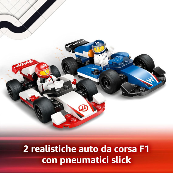 - Set giocattolo con monoposto di F1® LEGO® City: porta l’emozione della pista nei momenti di gioco dei bambini con il set costruibile Monoposto Williams Racing e Haas F1® LEGO City dai 4 anni in su