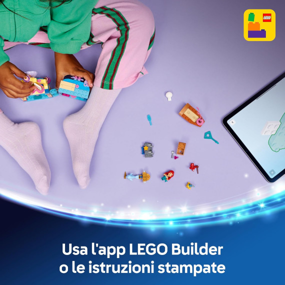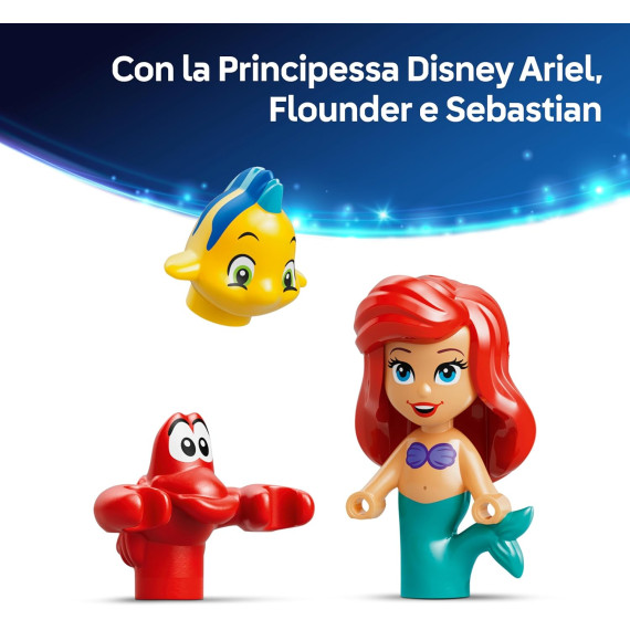 - PERSONAGGI E ACCESSORI LEGO® ǀ DISNEY: ricrea le scene dei film preferiti o nuove storie con la Principessa Disney Ariel, Flounder e Sebastian, uno scrigno del tesoro con forchetta e un cristallo, ecc.