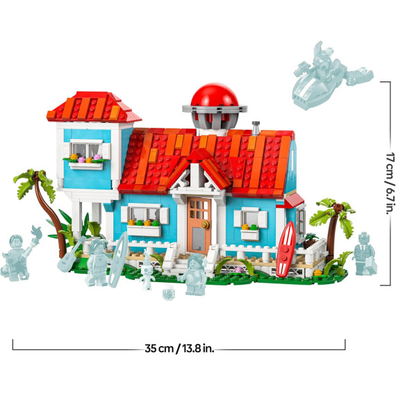 - Dimensioni: la casa sulla spiaggia del film Disney di successo Lilo e Stitch in questo set LEGO® ǀ Disney costruibile di 834 pezzi misura 17 cm di altezza, 35 cm di larghezza e 14 cm di profondità