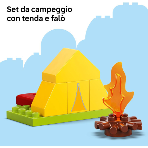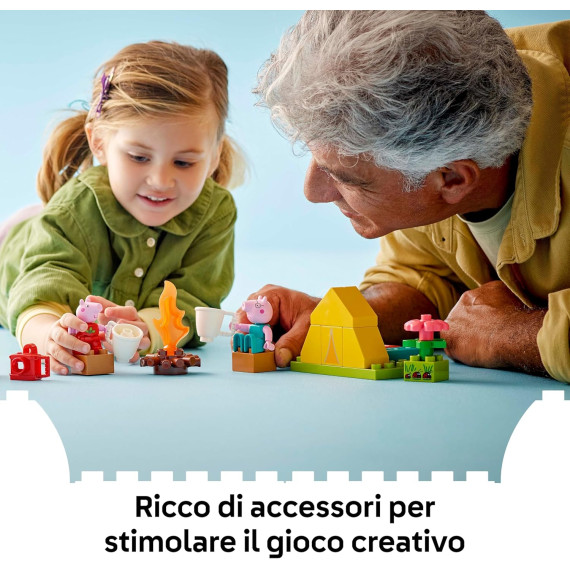 - Set da campeggio per bambini in età prescolare amanti della natura: il giocattolo costruibile Gita in campeggio Peppa Pig LEGO® DUPLO® trasporta i bambini nei boschi per vivere avventure con Peppa Pig e Papà Pig