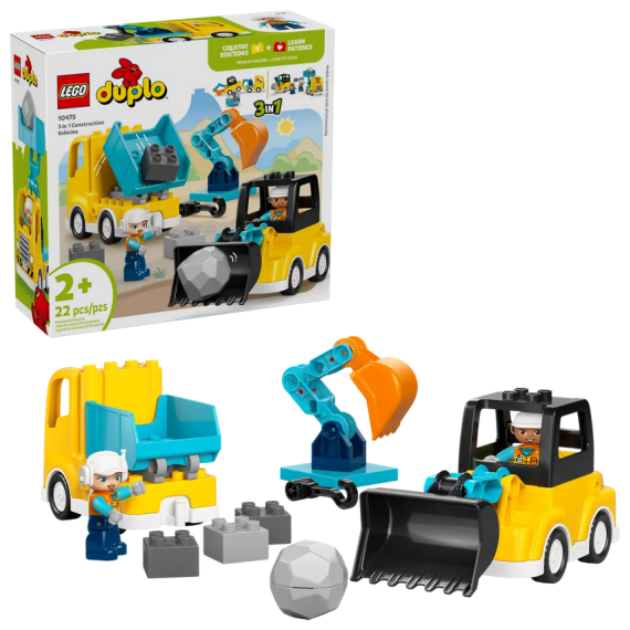Lego Duplo - Veicoli da cantiere 3 in 1 - Lego 10475 include 2 personaggi 22pz Anni 2+