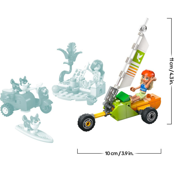 - 2 veicoli LEGO®: il set include uno scooter e un windskate costruibili, ciascuno con spazio per una mini-doll e un cane, oltre a una mini-tavola da surf per i corgi