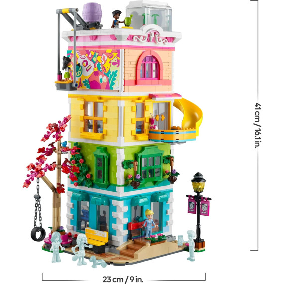 - Dimensioni: l’edificio del Centro comunitario di Heartlake City LEGO® Friends misura 41 cm di altezza, 23 cm di larghezza e 28 cm di profondità