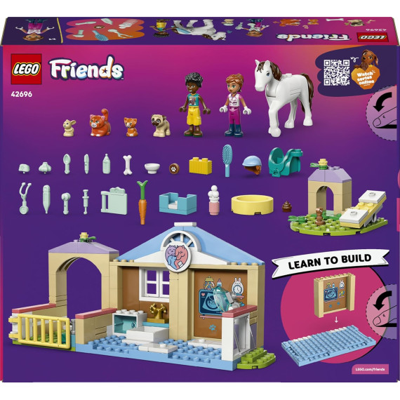 - CURA DEI PET: la Clinica veterinaria LEGO® Friends (42696) ha tutto ciò di cui i bambini hanno bisogno per raccontare storie sulla cura degli animali, tra cui una stalla per cavalli giocattolo, sala degli esami, un parco giochi per animali domestici e altro ancora