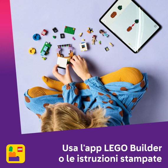 Scopri altri giocattoli e regali divertenti (disponibili separatamente) dell’universo LEGO Friends. Questo giocattolo per il gioco di finzione contiene l’app LEGO Builder per una costruzione intuitiva. Qui i bambini possono ingrandire e ruotare i modelli, salvare i set e tenere traccia dei progressi durante la costruzione.