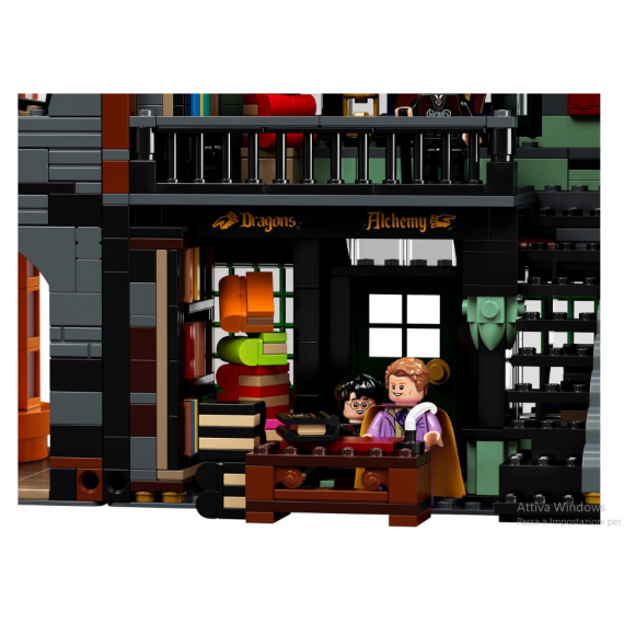 - Il set Diagon Alley™ LEGO® Harry Potter™, alto più di 29 cm, largo 102 cm e profondo 13 cm, è ricchissimo di dettagli realistici.