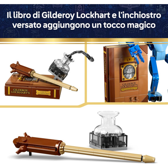 - ACCESSORI ICONICI: esponi il personaggio con il libro costruibile di Gilderoy Lockhart™ e la boccetta di inchiostro semi-rovesciata