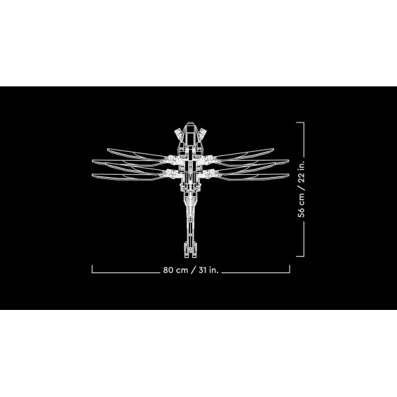 - Dimensioni: questo modello di 1.369 pezzi, con le ali spiegate, misura 23 cm di altezza, 57 cm di lunghezza e 79 cm di larghezza